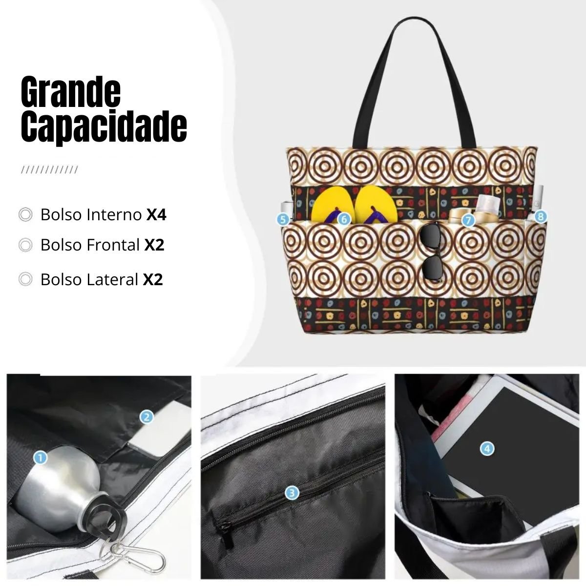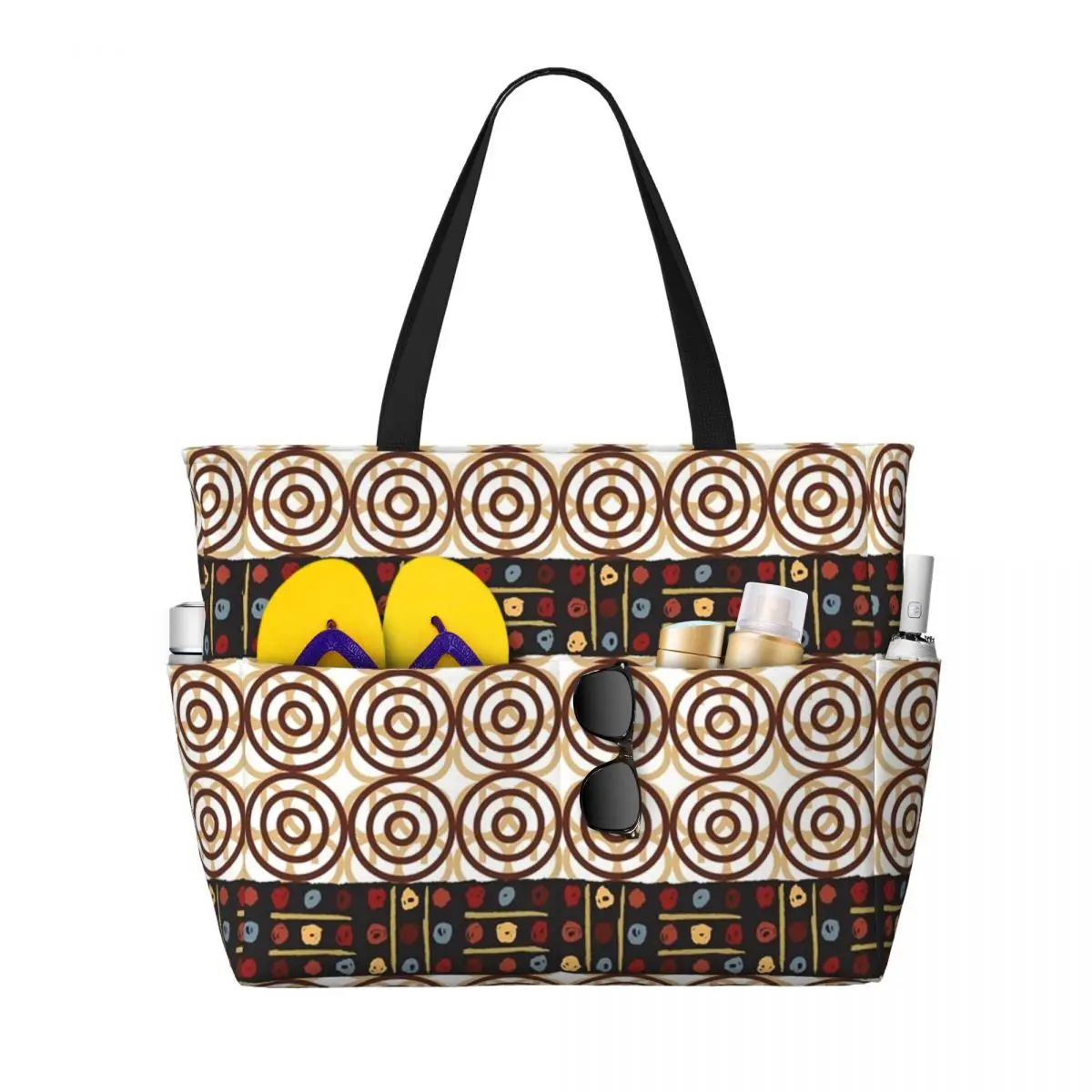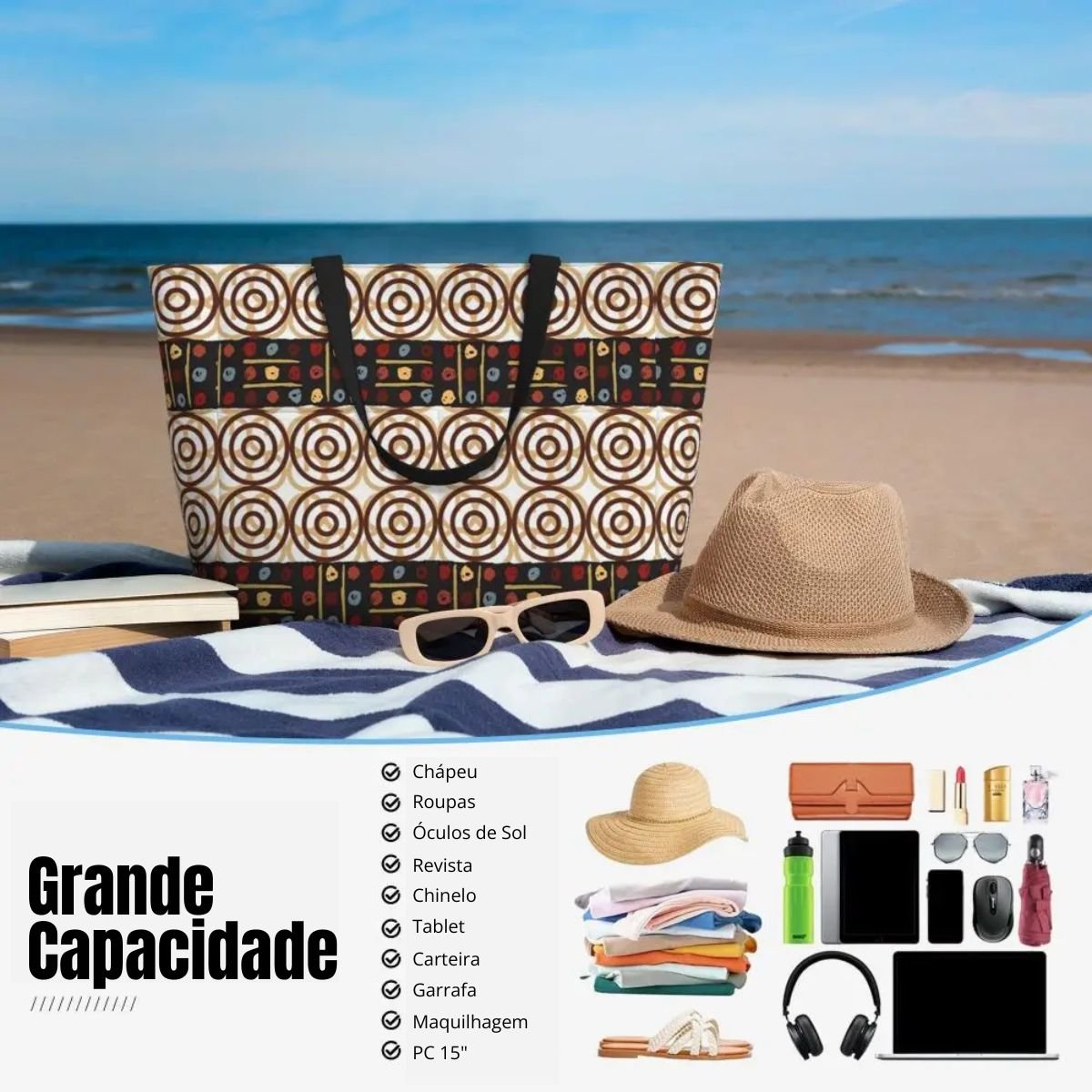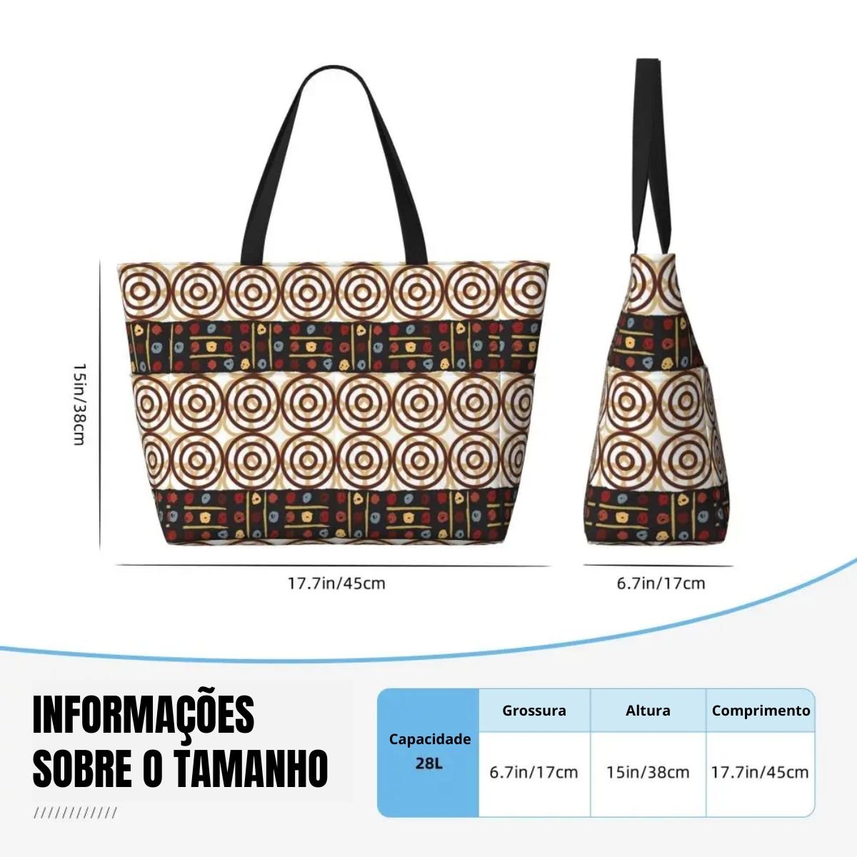 Ideal para o mercado, praia, ginásio ou viagens, oferece grande capacidade e resistência, sem perder o charme. Produzida com tecido africano, alia autenticidade, durabilidade e versatilidade num só acessório.