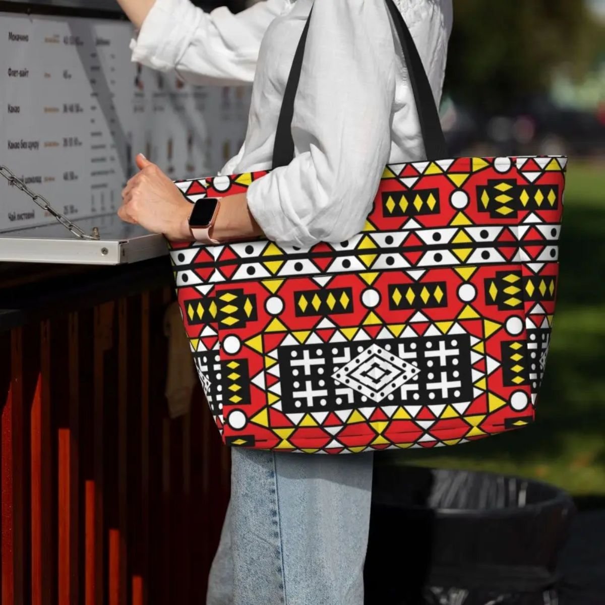Uma bolsa vibrante e resistente com padrão africano, perfeita para quem deseja mostrar orgulho pela raízes africanas.